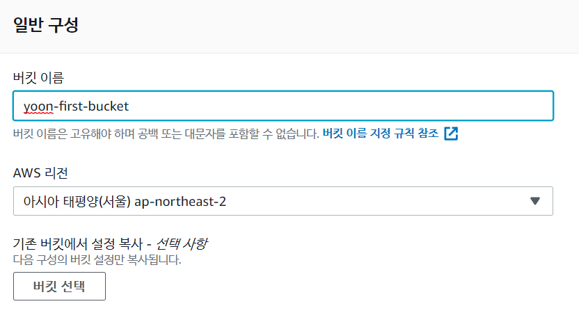 버킷을 만든 후에는 이름을 변경할 수 없습니다.